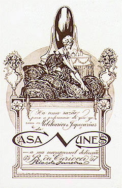poucos artistas. Veja o rebuscamento do traço, à esquerda e a simplicidade ingênua no anúncio da direita. A influência européia, principalmente francesa, era predominante. |