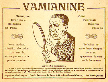 | Mas o que será que eles quiseram dizer com: "Borbulhas no rosto fazem desapparecer os symptomas de uma saude florescente" ? |